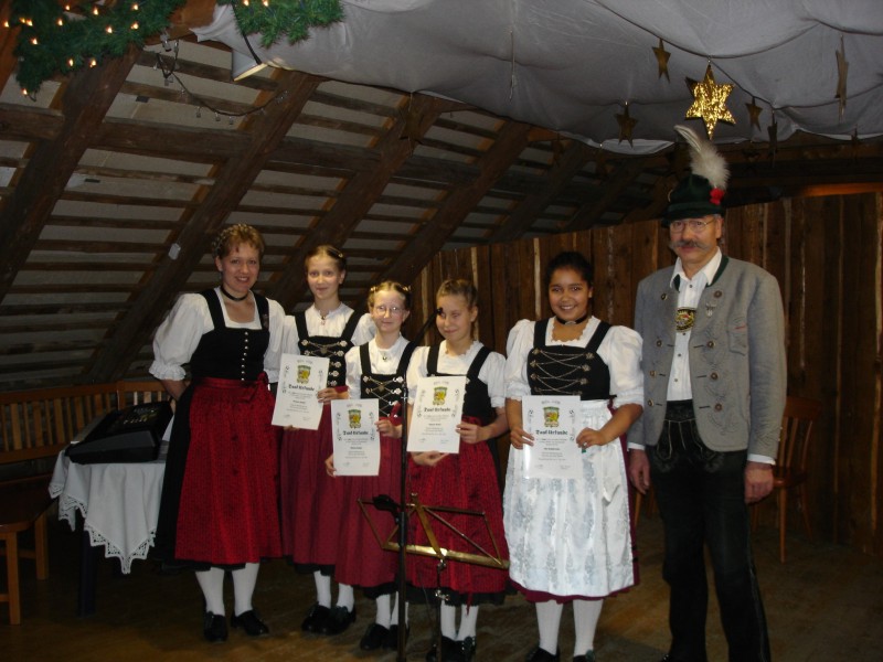 Der Trachtenverein Taubenbergler Stamm hat es sich zu seiner Aufgabe gemacht, auch die Mitglieder der Kinder- und Jugendgruppe für fünf- beziehungsweise zehnjähriges Mitwirken zu ehren.