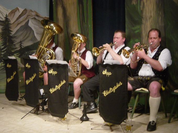 Einzige Fremdgruppe des Abends waren die altbairischen Weisenbläser von "Musimoasta" Sepp Eibelsgruber. Martin Mayer (Tuba), Martin Stadler (Bariton), Eibelsgruber (Flügelhorn) und Wolfgang Hirschberger (Flügelhorn) waren eine Bereicherung des Abends mit ihrer Blasmusik.