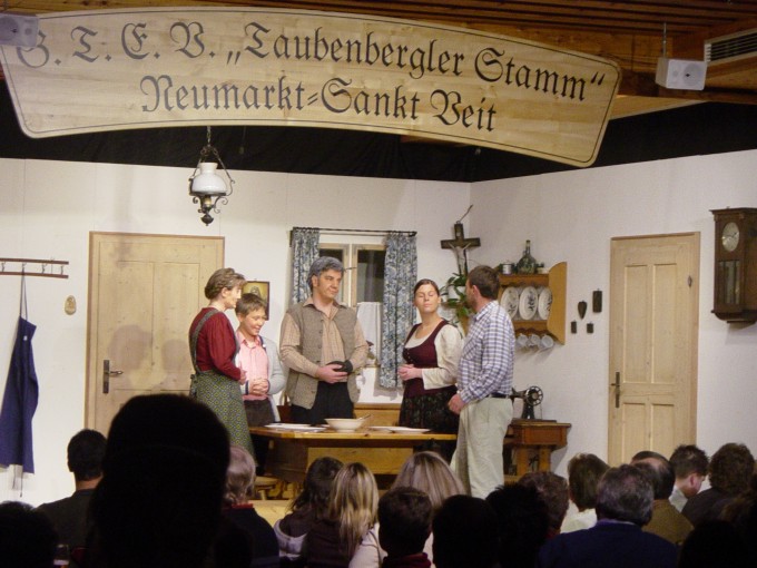 Bei den ersten Aufführungen haben die Laienspieler die in sie gesetzten Erwartungen voll erfüllt, auch wenn es diesmal für die Besucher kaum etwas zum Lachen gab. Das Stück berichtet von der alten Hubermutter (Gabi Kattner), die am Sterbebett dem Herrn Pfarrer (Herbert Weindl) neue Kirchenglocken stiftet. Die alten Glocken waren im Krieg zu Kanonen eingeschmolzen worden.