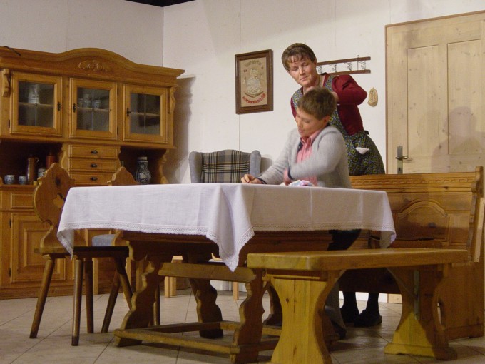 Da begab es sich, dass der Sohn Sixtus, gebrochen an Leib und Seele aus dem Krieg heimkehrte und zusehends in die Teilnahmslosigkeit verfiel, obwohl sich seine Frau Anna (Gabi Deinböck) und Sohn Hansi (Martin Angermeier) aufopferungsvoll um ihn kümmern.