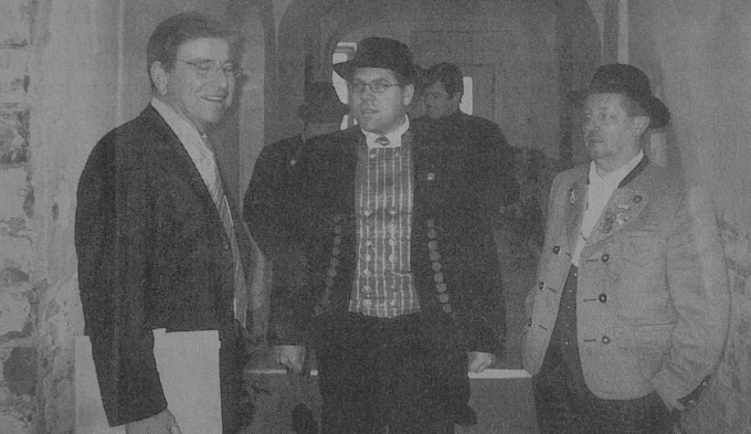 BU: Minister Dr. Goppel im Gespräch mit dem stellvertretenden Vorsitzenden des Fördervereins vom haus der Bayerischen Trachtengeschichte, Anderl Huber, und dem Landesvorsitzenden Klaus Reitner.