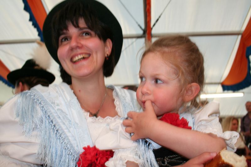 Im Festzelt erhielten die Kinder und Jugendlichen alkoholfreie Getränke und die Erwachsen eine Maß Bier spendiert, zur Hälfte vom Festwirt Zens und zur Hälfte von Verein.