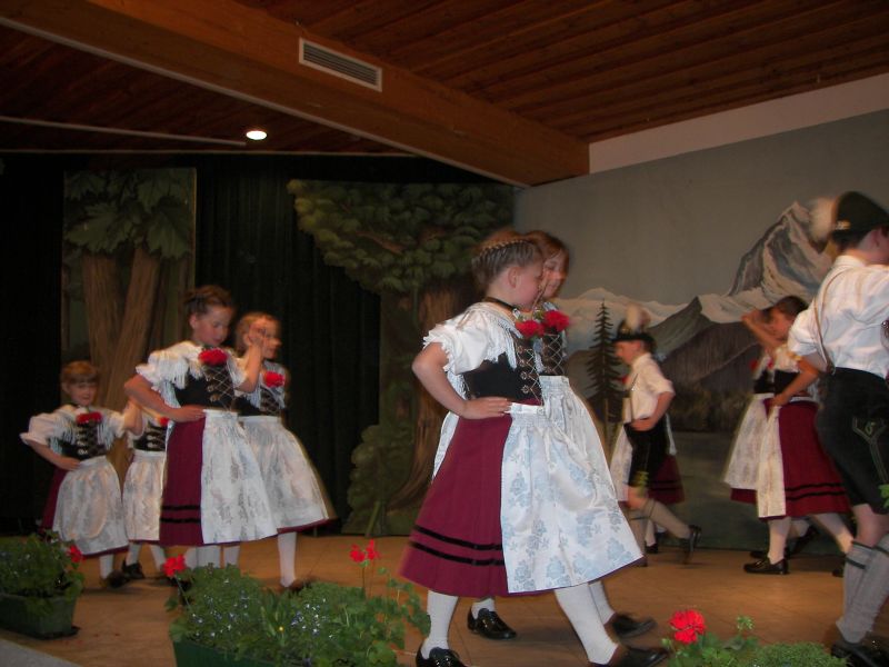 In dem fast dreistündigen Programm wechselten sich die Auftritte der Vereinsgruppen in bunter Reihenfolge ab. Die Kindergruppe tanzte Volkstänze wie Kuckuckspolka und Bauernmadl, die Jugendgruppe tanzte flott den Marschierboarischen und das Mühlradl, Gabi Haupt erfreute mit der Kindersinggruppe die Zuhörer, Theresia Kupper hatte den Flötenkindern eine lustige Polka einstudiert und die Taubenbergler Stubenmusik unterhielt mit Musikstückeln und Gesang das Publikum.