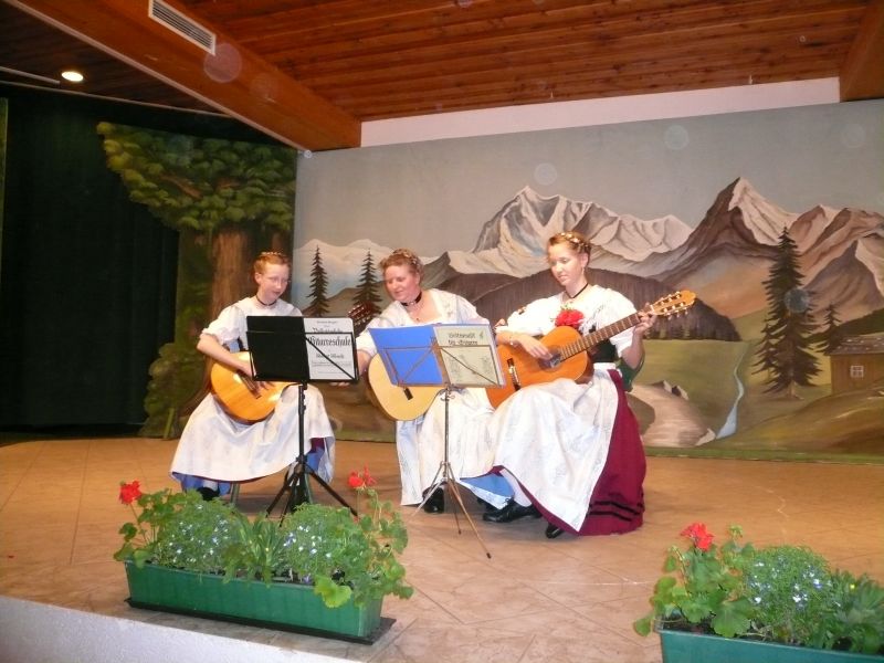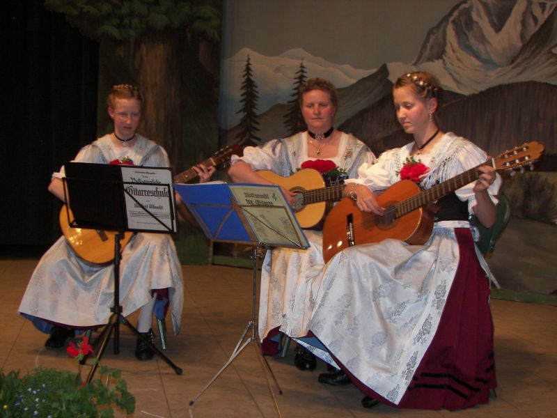 Dazwischen plattelten die Buam schneidige Plattler und das Tegernbacher Gitarrentrio brachte die Seiten mit einem Boarischen zum Klingen. Auch die Aktiven Trachtler zeigten Tänze wie Spinnradl oder zum Abschluss den Sterntanz.