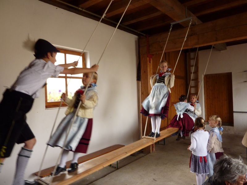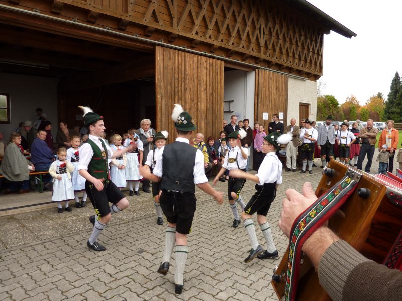 Zur Unterhaltung tanzen und plattelten die Dirndl und Buam aus der Kinder- und Jugendgruppe. Die Kindersinggruppe sang ein Lied und Hans Deinböck und Hans Senftl spielten mit der Ziach flotte Stücke.