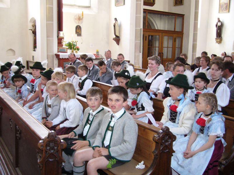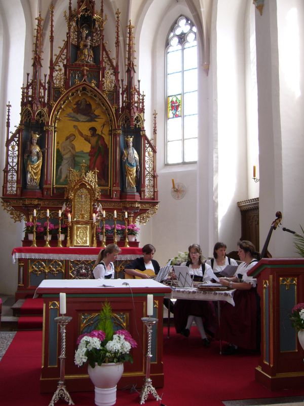 Zur Maiandacht um 14.30 Uhr versammelten sich die Kinder- u. Jugendgruppe mit ihren Müttern und den Aktiven Trachtlern in der St. Johann Kirche in Neumarkt-Sankt Veit. Unsere neuer Stadtpfarrer Franz Eisenmann zelebrierte sehr feierlich diese Maiandacht. Die musikalische Gestaltung mit Marienliedern und Musikstückln übernahm wie immer die Taubenbergler Stubenmusik.