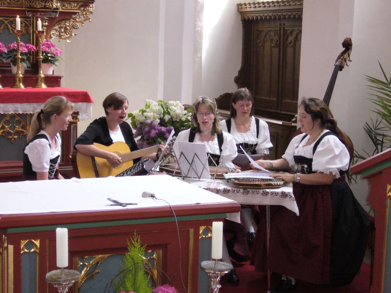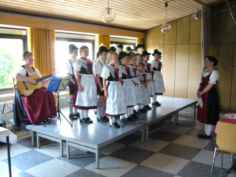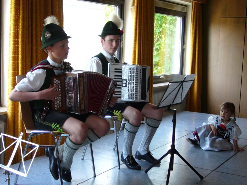 Die Kindersinggruppe unter der Leitung von Gabi Haupt sang ein Muttertagsständchen. Dirndl und Buam aus der Jugendgruppe brachten mit ihren Instrumenten noch einige flotte Stückl und die Kinder trugen Gedichte vor. Theresia Kupper spielte mit der Flötengruppe ebenfalls Musikstückl.