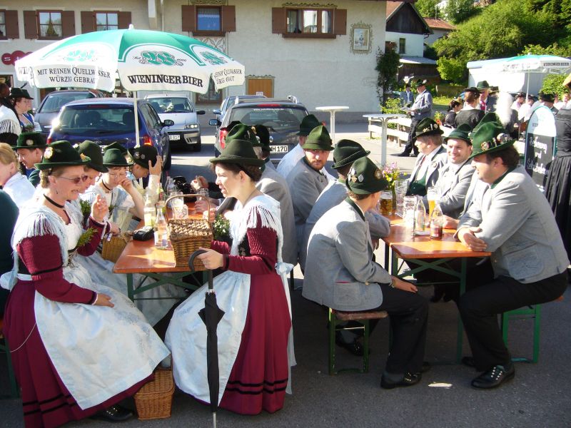 Das schöne Wetter lockte noch viele Wallfahrer in den Wirtsgarten unterhalb des Klostergasthofes, wo die Musikkapelle im Auftrag des Trachtenvereins Chieming für Unterhaltung sorgte.