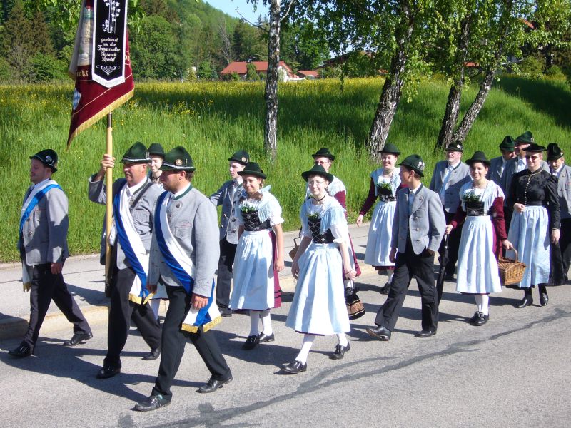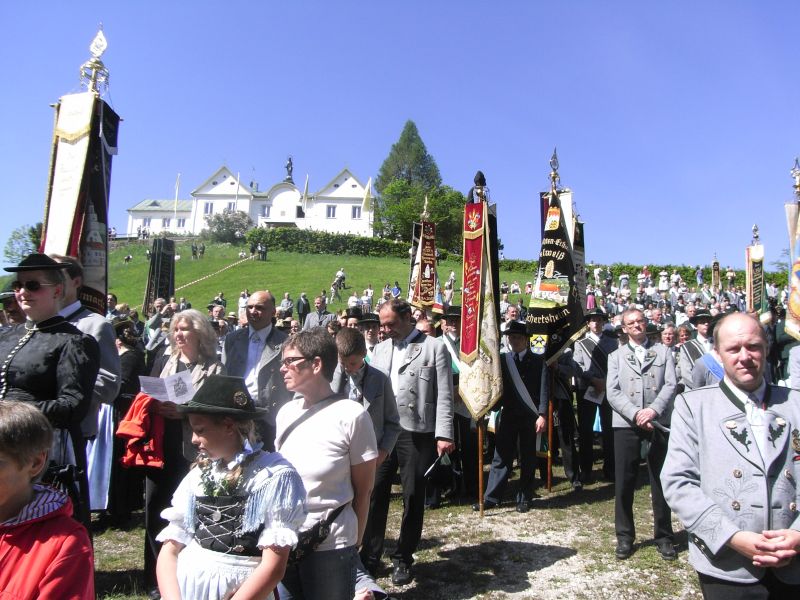 Mit herrlichem Wetter wurden die Trachtler des Gauverbandes I bei ihrer 59.Trachtenwallfahrt von Siegsdorf nach Maria Eck für ihre Treue belohnt. über 2500 Frauen, Männer, Kinder und Jugendliche aus 99 Vereinen des Gauverbandes I waren nach Siegsdorf gekommen um gemeinsam betend nach Maria Eck zu pilgern. Zum donnernden Ehrensalut der Weihnachtsschützen aus Maria Gern reihten sich die Pilger und ihre Fahnen rund um den Freialtar unterhalb des Klosters, wo sie von der Musikkapelle Chieming mit einem festlichen Choral begrüßt wurden.