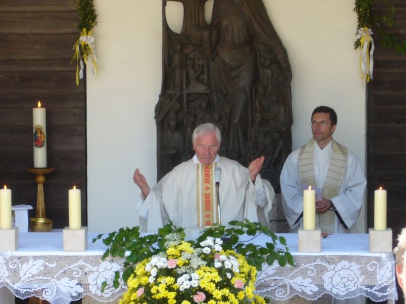 Unser Stadtpfarrer a. D. Alois Holzner zelebrierte an seinem 72. Geburtstag die Messe auf dem Freialtar von Maria Eck.