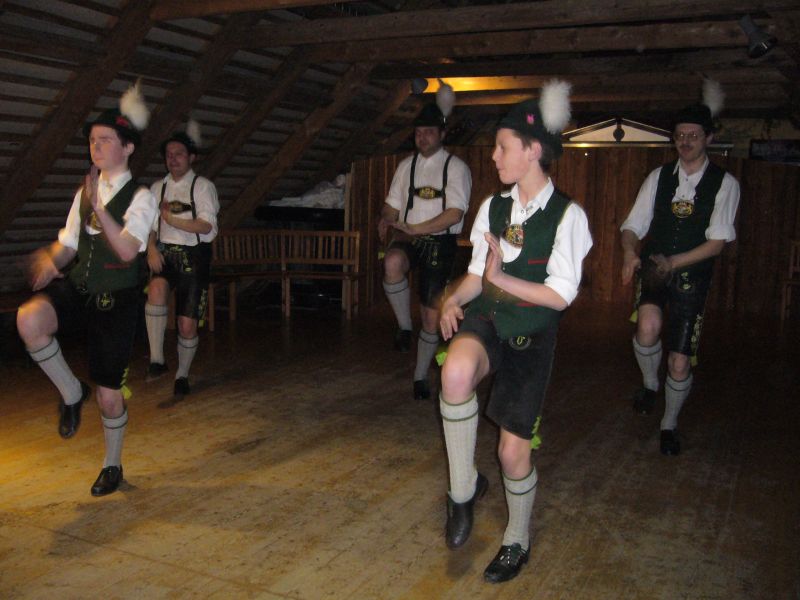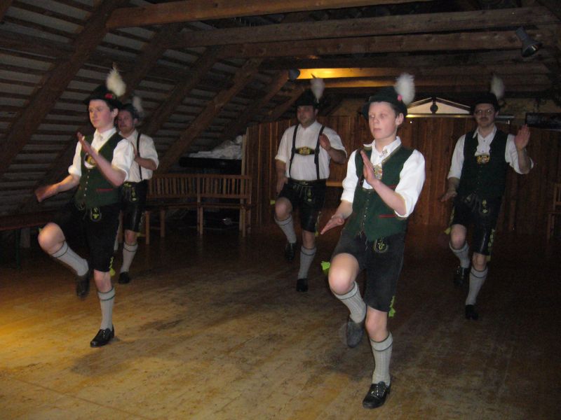 Zur Unterhaltung, zu Plattlern und zu den Tänzen spielte Hans Senftl auf der Ziach. Die Buam plattelten einige schneidige Plattler und mit den Dirndl wurden Tänze wie Kreuzpolka oder Marschierboarischer getanzt.