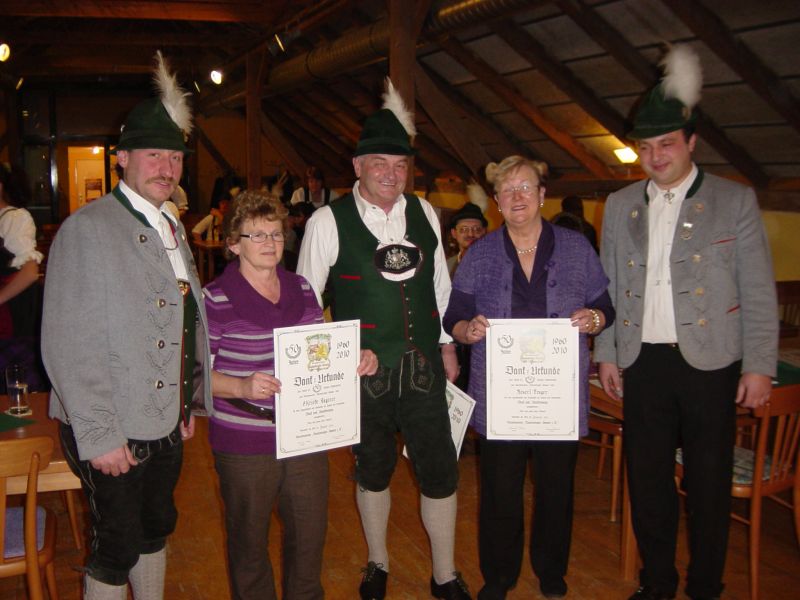 In der Jahreshauptversammlung des Gebirgstrachtenerhaltungsvereins Taubenbergler Stamm in Neumarkt-St.Veit ehrte der wiedergewählte Vorsitzende Klaus Eckereder zusammen mit seinem Stellvertreter Richard Wimmer eine Anzahl treuer Mitglieder.