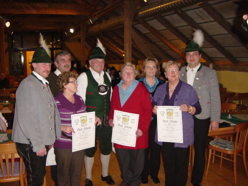Für gar 50-jährige Mitgliedschaft gab es Anerkennungsurkunden für Annemie Apostel, Reserl Bauer, Elfriede Kagerer, Sepp Nagl und Reserl Trager.