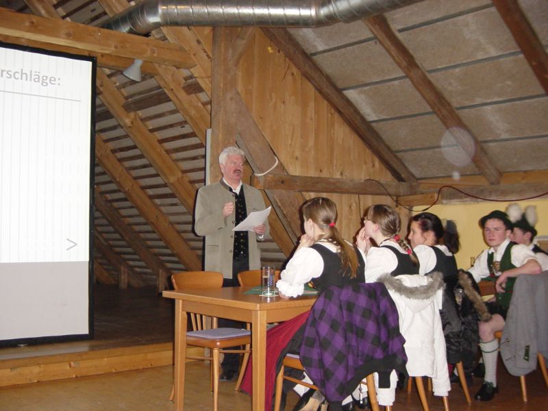 Vereinsintern wurden in 31 Montagsproben der Kinder- und Jugendgruppe für Auftritte vorbereitet, hinzu kamen 16 Proben für diverses Preisplatteln.