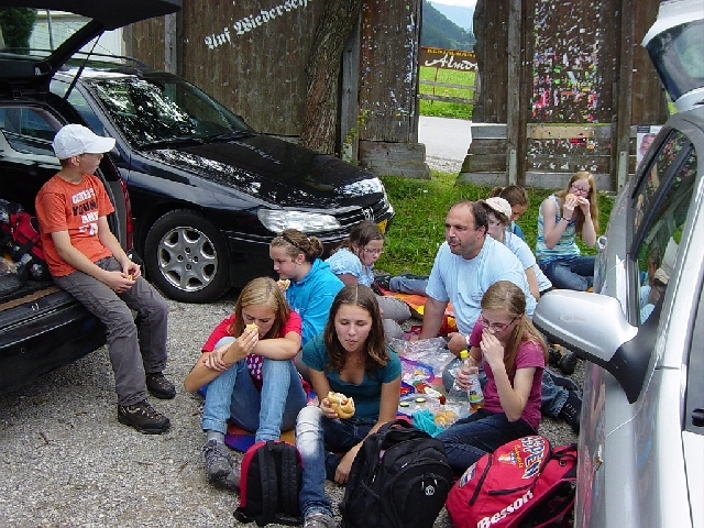 mitgebrachten Schnitzelsemmeln, Gurken und Paprika genüsslich