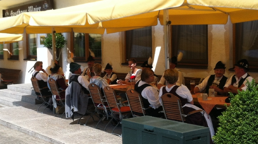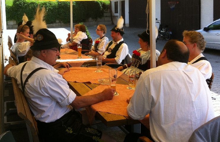 Hinterher fuhren 16 Trachtlerinnen und Trachtlern noch zum Wirt nach Teising zu einem geselligen Frühschoppen mit Weißwürsten und frischen Brezen, bis sich die Runde dann gegen 12 Uhr auflöste.