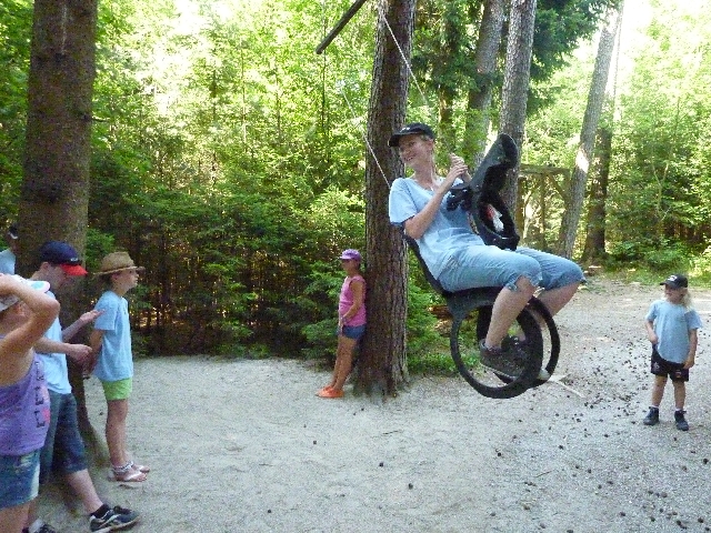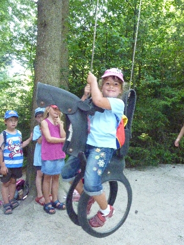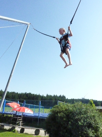 Anschließend durften sich alle an den Spielgeräten wie Trampolin, Schaukel, Rutsche usw. austoben. Besonders beliebt waren die neuen Spielgeräte und das Einzel-Trampolinspringen am Seil.
