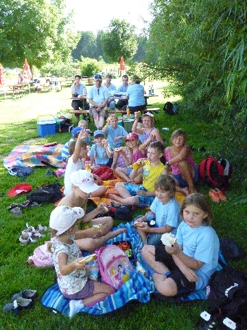 Nach dem zweistündigem Rundgang durch den Wald machten wir mit der mitgebrachten Brotzeit gemeinsam ein Picknick auf einem schattigen Plätzchen in der Wiese.