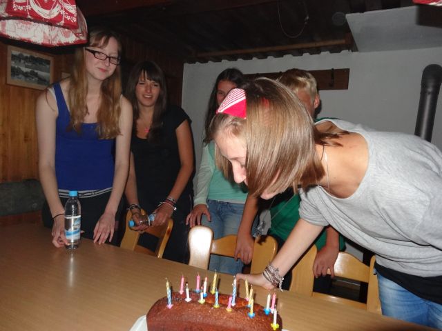 mitgebrachten Kuchen 18 Kerzen auf und sangen ihr gemeinsam ein