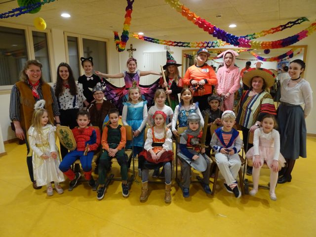 Engel und viele weitere toll verkleidete, faschingslustige Kinder und